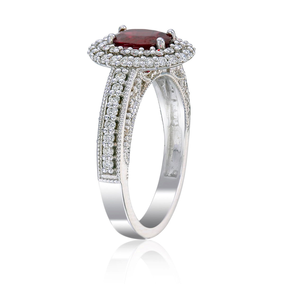 แหวนทับทิมพม่าเลือดนกพิราบไม่ร้อนและเพชร