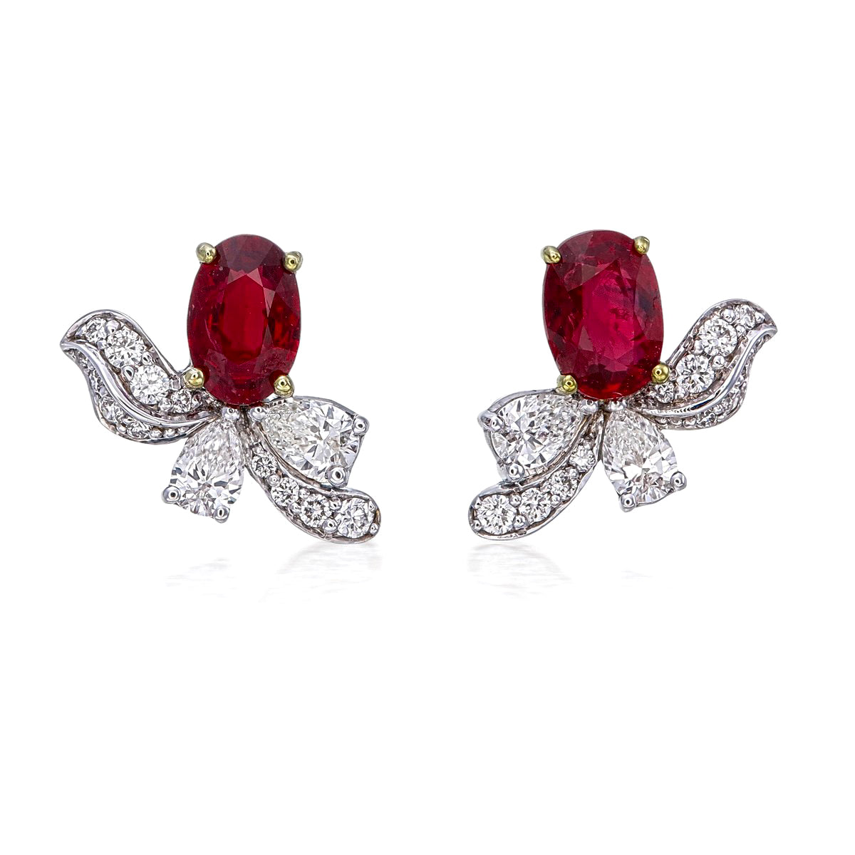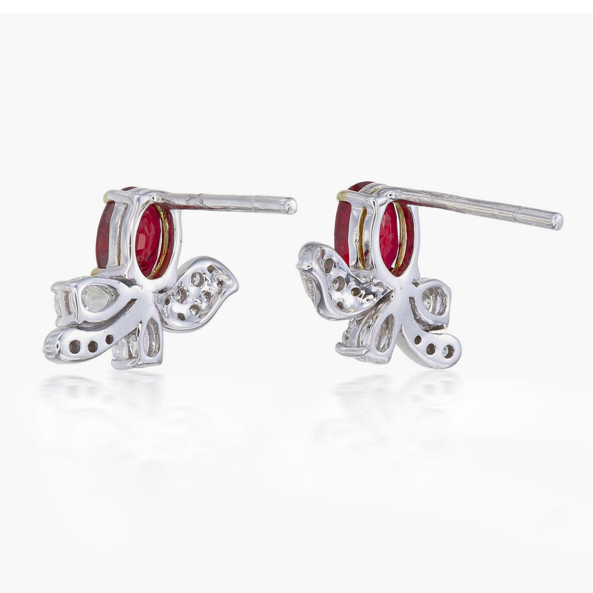 ต่างหูทับทิมและเพชรลายดอกไม้