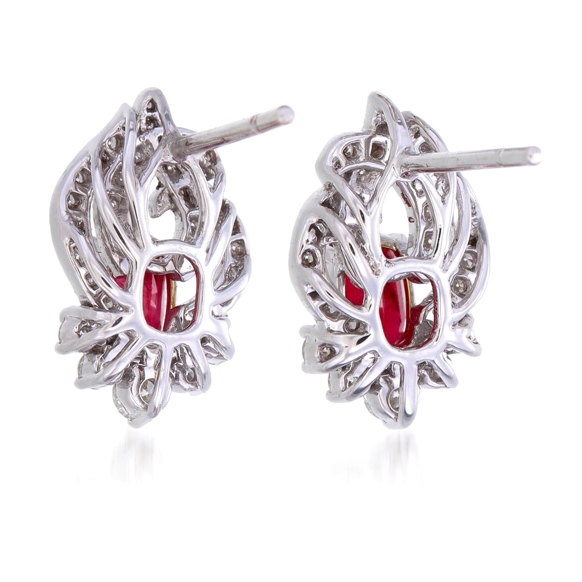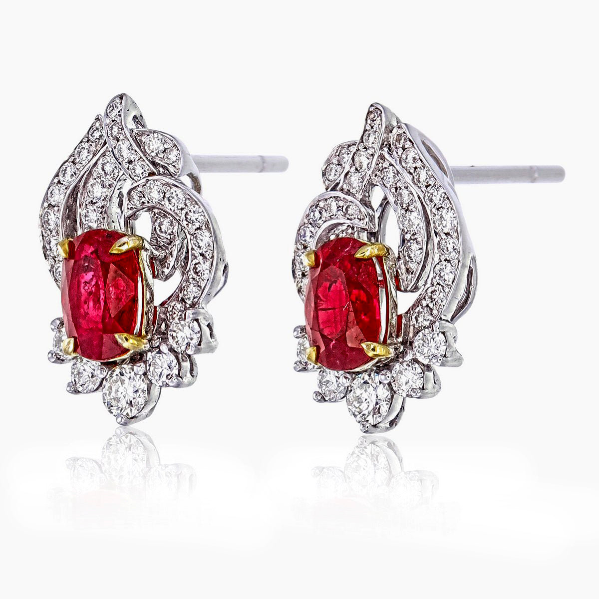 - หัวใจของต่างหูแต่ละข้างประดับด้วยทับทิมทรงหมอนอันน่าหลงใหล ซึ่งมีประกายแวววาวประมาณ 0.80 ถึง 0.95 กะรัต