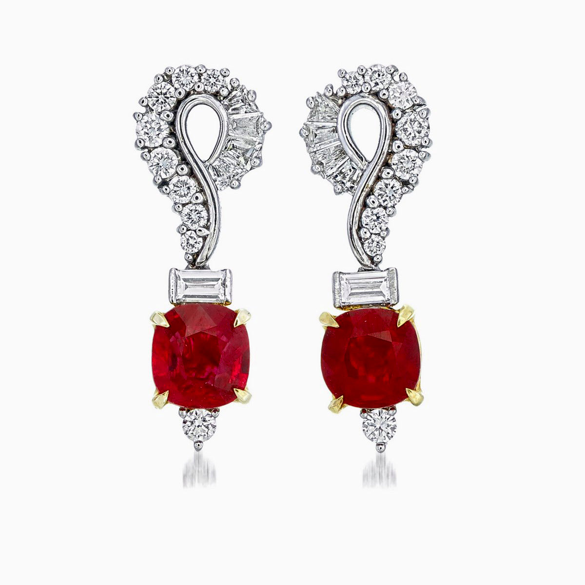 - หัวใจของต่างหูแต่ละข้างประดับด้วยทับทิมทรงหมอนอันน่าหลงใหล โดยมีน้ำหนักประมาณ 0.60 ถึง 0.85 กะรัต