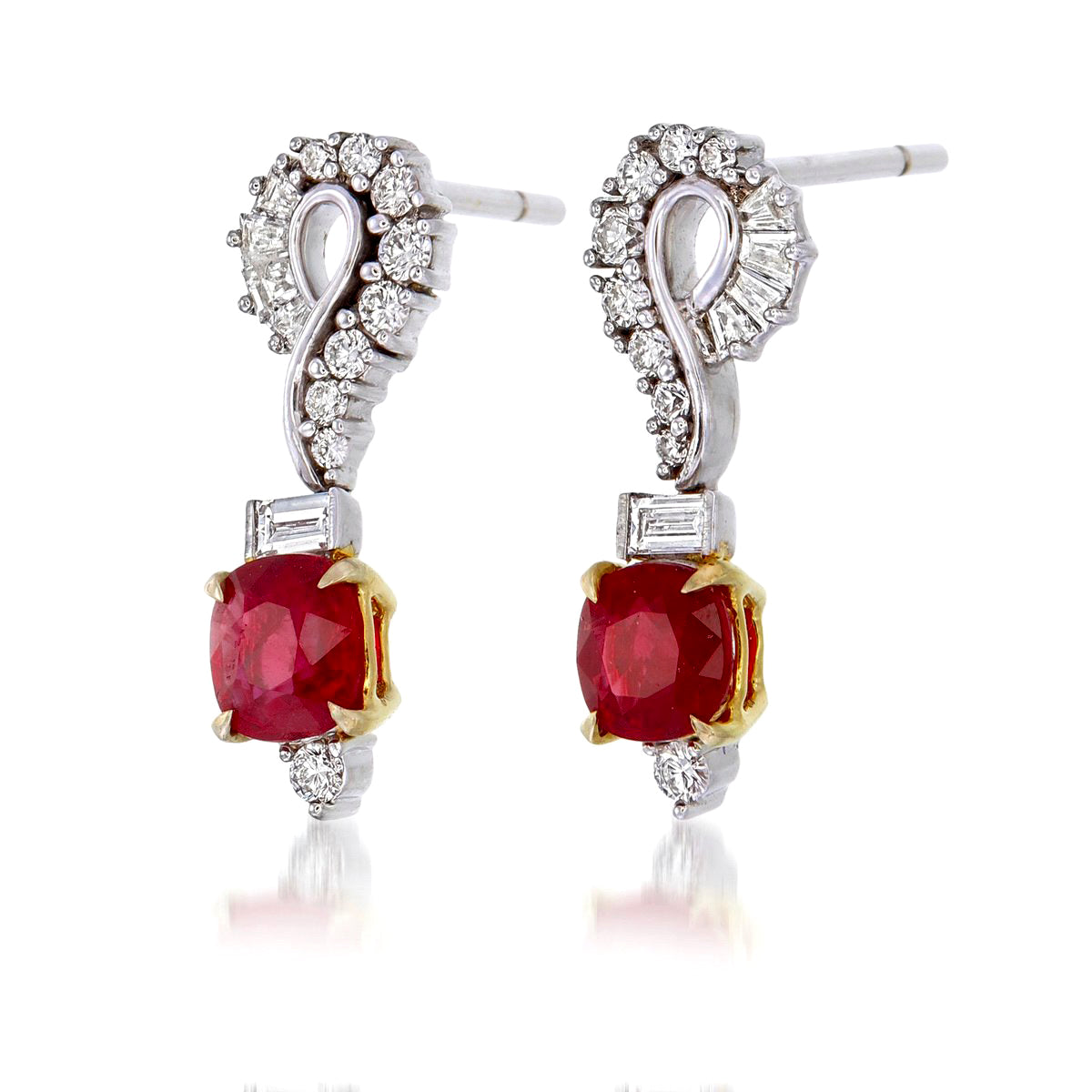 - อัญมณีพม่าเหล่านี้ได้รับการรับรองจาก GemResearch Swisslab (GRS) ว่าเป็นอัญมณีสี "เลือดนกพิราบ" อันเป็นที่ปรารถนา โดยมีความลึกและความแวววาวที่น่าทึ่ง
