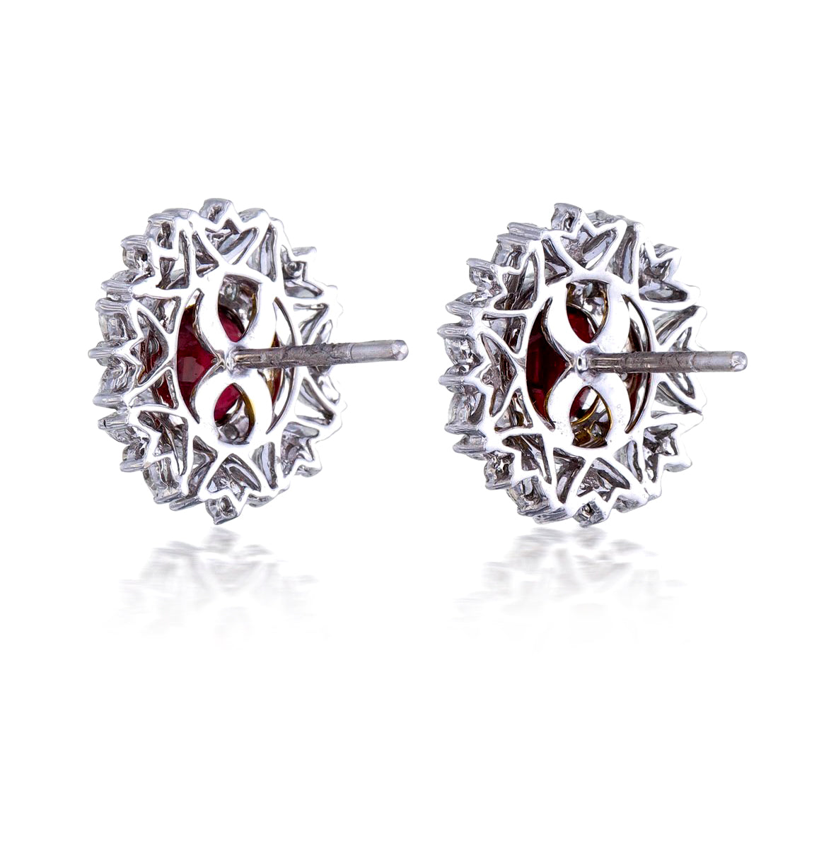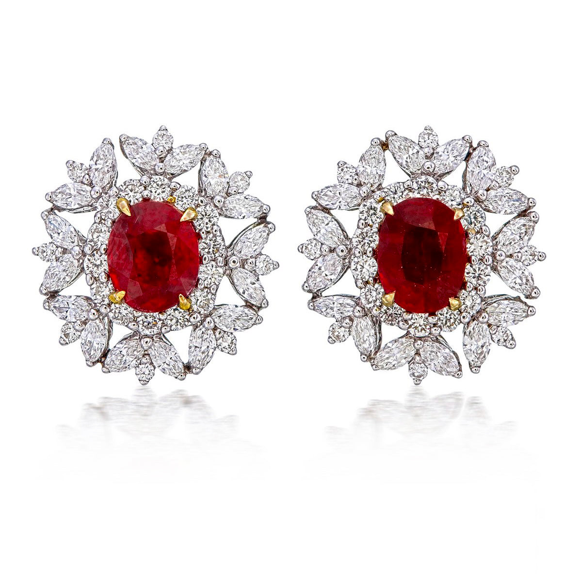 ต่างหูเพชรและทับทิมสีเลือดนกพิราบแบบคลาสสิกลายเกล็ดหิมะ